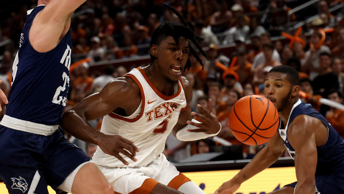 Marcus Carr #5 of the Texas Longhorns battles for a loose ball during the game between the Rice Owls and the Texas Longhorn at Moody Center on December 12, 2022 in Austin, Texas. (Photo by Chris Covatta/Getty Images)Photo: Getty Images