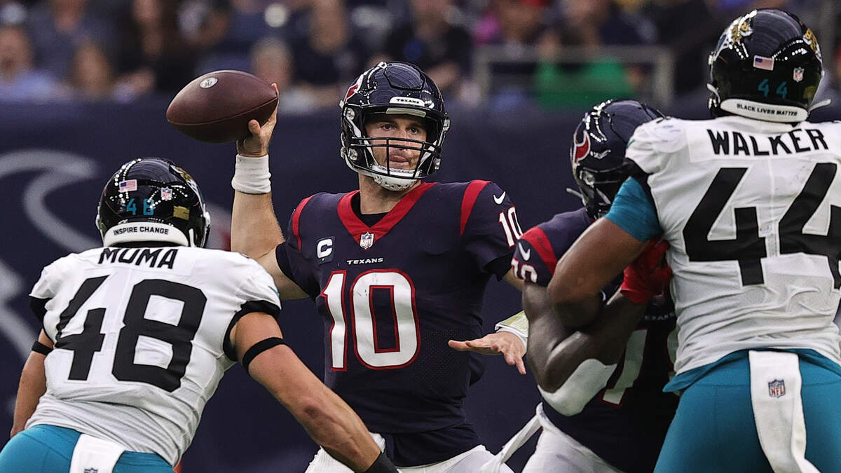 The Jaguars crushed the Texans 31-3 in Houston and set up a showdown for the AFC South title against the Titans next weekend. Trevor Lawrence threw for just 152 yards as Travis Etienne carried the offense on 108 rushing yards along with a score. JaMycal Hasty and Snoop Conner also found the end zone on the ground as the Jaguars improved to 8-and-8. Jacksonville plays host to the Titans next weekend in a winner-take-all game for the division. Davis Mills threw for 202 yards in the loss, which dropped Houston to 2-13-and-1 on the season. The Texans head to Indianapolis to play the Colts in their season finale next Sunday. The Texans would pick first in the upcoming draft if the season ended today.