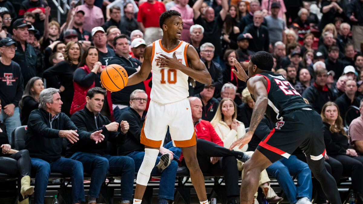 Guard Sir'Jabari Rice #10 of the Texas Longhorns gestures during the second half against the Texas Tech Red Raiders at United Supermarkets Arena on February 13, 2023 in Lubbock, Texas. (Photo by John E. Moore III/Getty Images)Photo: Getty Images
