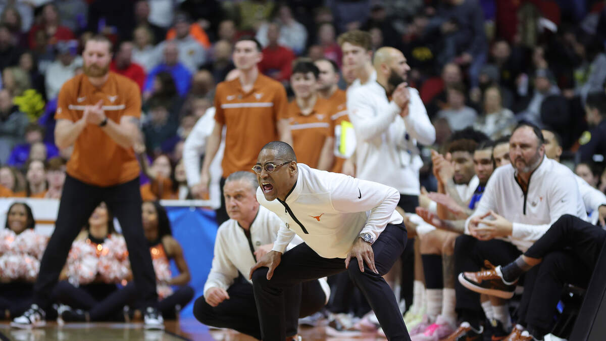 Head coach Rodney Terry of the Texas Longhorns reacts during the second half against the Colgate Raiders in the first round of the NCAA Men's Basketball Tournament at Wells Fargo Arena on March 16, 2023 in Des Moines, Iowa. (Photo by Stacy Revere/Getty Images)Photo: Getty Images