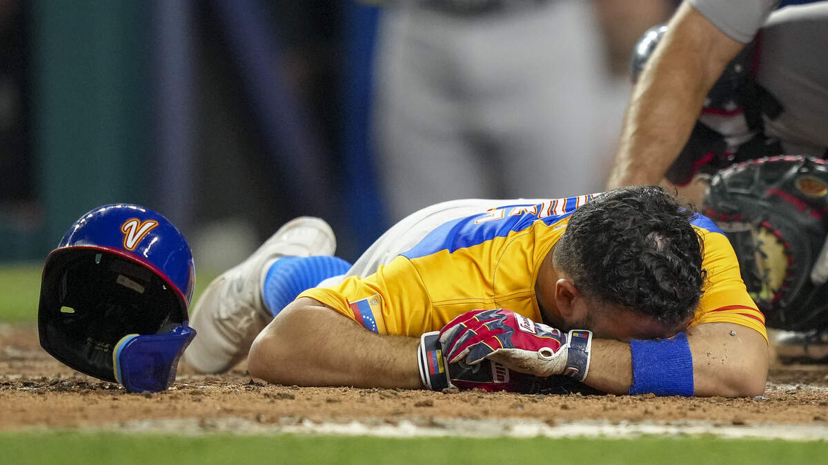 Jose Altuve #27 of Venezuela lies on the ground after being hit by a pitch during the fifth inning during a 2023 World Baseball Classic Quarterfinal game against the United States at loanDepot park on March 18, 2023 in Miami, Florida. (Photo by Eric Espada/Getty Images)Photo: Getty Images