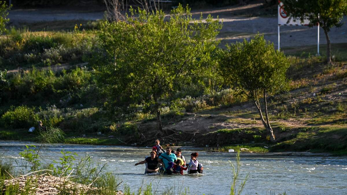 A migrant family from Venezuela illegally crosses the Rio Grande River in Eagle Pass, Texas, at the border with Mexico.Photo: Getty Images