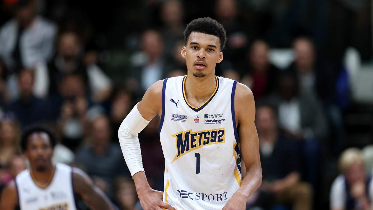 French power forward Victor Wembanyama looks on during the French Elite basketball match between Boulogne-Levallois Metropolitans 92 and Paris Basketball at the Palais des Sports Marcel-Cerdan in Levallois-Perret, on the outskirts of Paris, on May 16, 2023.Photo: Getty Images