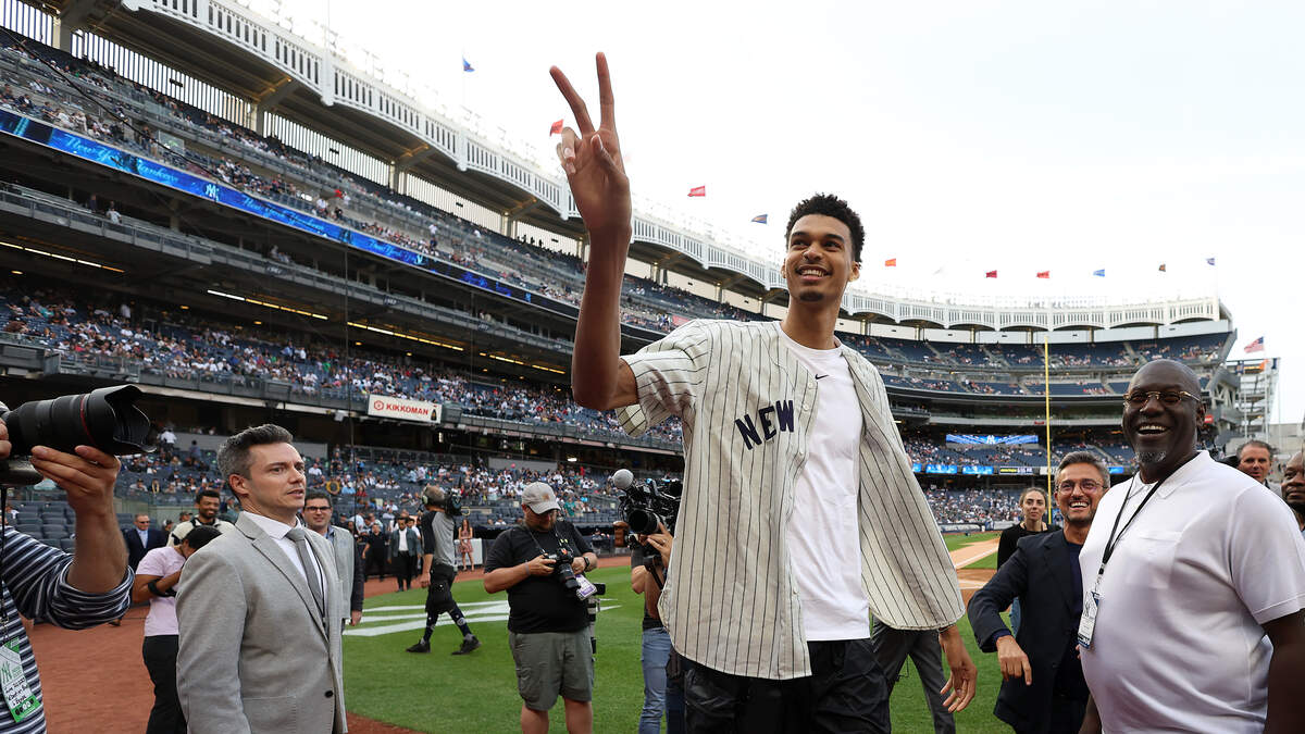 The NBA Draft is just one day away. A brand new crop of potential star players are set to join the league tomorrow night at the Barclays Center in Brooklyn. The San Antonio Spurs hold the number one pick and are widely expected to take French super-prospect Victor Wembanyama. Wemby threw out the first pitch during last night's New York Yankees game and was the hit of the town. He rode on the subway for the first time and greeted fans at Yankee Stadium.