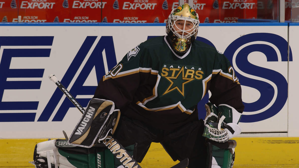 Goaltender Ed Belfour #20 of the Dallas Stars stetches on the ice before the NHL game against the Toronto Maple Leafs at Air Canada Centre in Toronto, Ontario, Canada. Photo: Getty Images