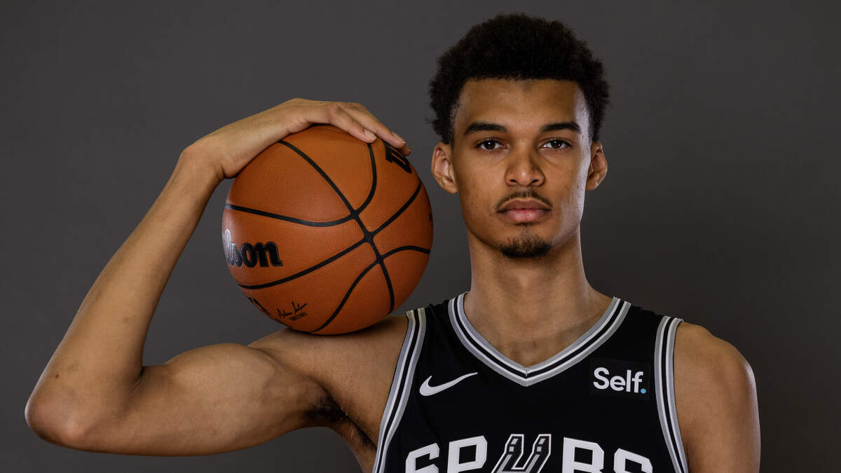 3 of 9 Victor Wembanyama #1 of the San Antonio Spurs poses for a portrait during the 2023 NBA rookie photo shoot at UNLV on July 12, 2023 in Las Vegas, Nevada. (Photo by Mike Lawrie/Getty Images)Photo: Mike Lawrie / Getty Images Sport / Getty Images