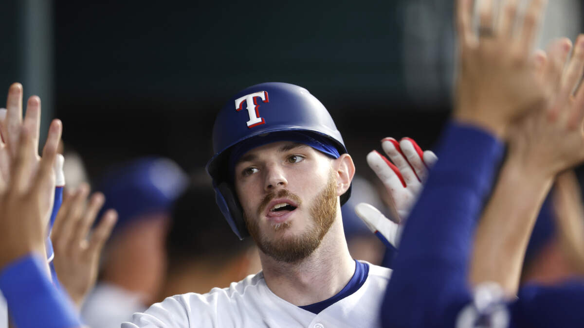 Jonah Heim #28 of the Texas Rangers celebrates with teammates after hitting a three-run home run against the Tampa Bay Rays during the eighth inning at Globe Life Field on July 19, 2023 in Arlington, Texas. The Rangers won 5-1. (Photo by Ron Jenkins/Getty Images)Photo: Ron Jenkins / Getty Images Sport / Getty Images