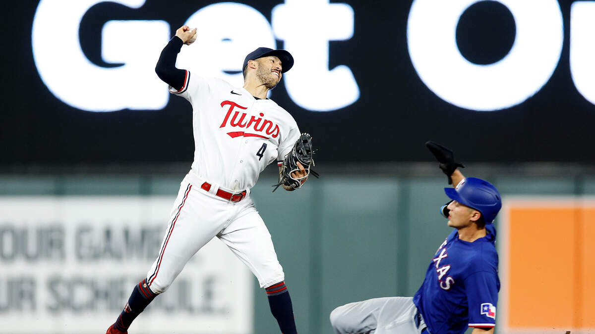 Corey Seager #5 of the Texas Rangers is out at second base as Carlos Correa #4 of the Minnesota Twins turns a double play to end the game at Target Field on August 24, 2023 in Minneapolis, Minnesota.Photo: David Berding / Getty Images Sport / Getty Images