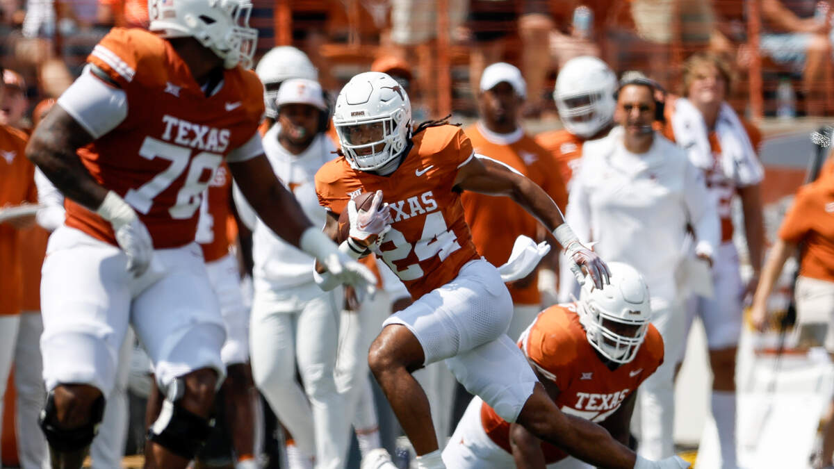 • Quinn Ewers passed to running back Jonathan Books for a 37-yard touchdown to give Texas a 7-3 lead.