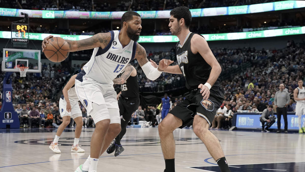 Markieff Morris #13 of the Dallas Mavericks controls the ball as Santi Aldama #7 of the Memphis Grizzlies defends during the first half at American Airlines Center on March 13, 2023 in Dallas, Texas. Photo: Sam Hodde / Getty Images Sport / Getty Images