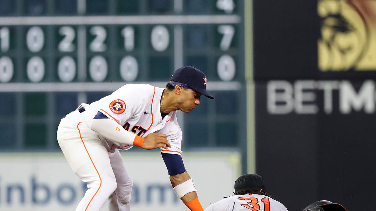 Cedric Mullins #31 of the Baltimore Orioles steals second base as Jeremy Pena #3 of the Houston Astros is late on the tag in the sixth inning at Minute Maid Park on September 19, 2023 in Houston, Texas. Photo: Bob Levey / Getty Images Sport / Getty Images