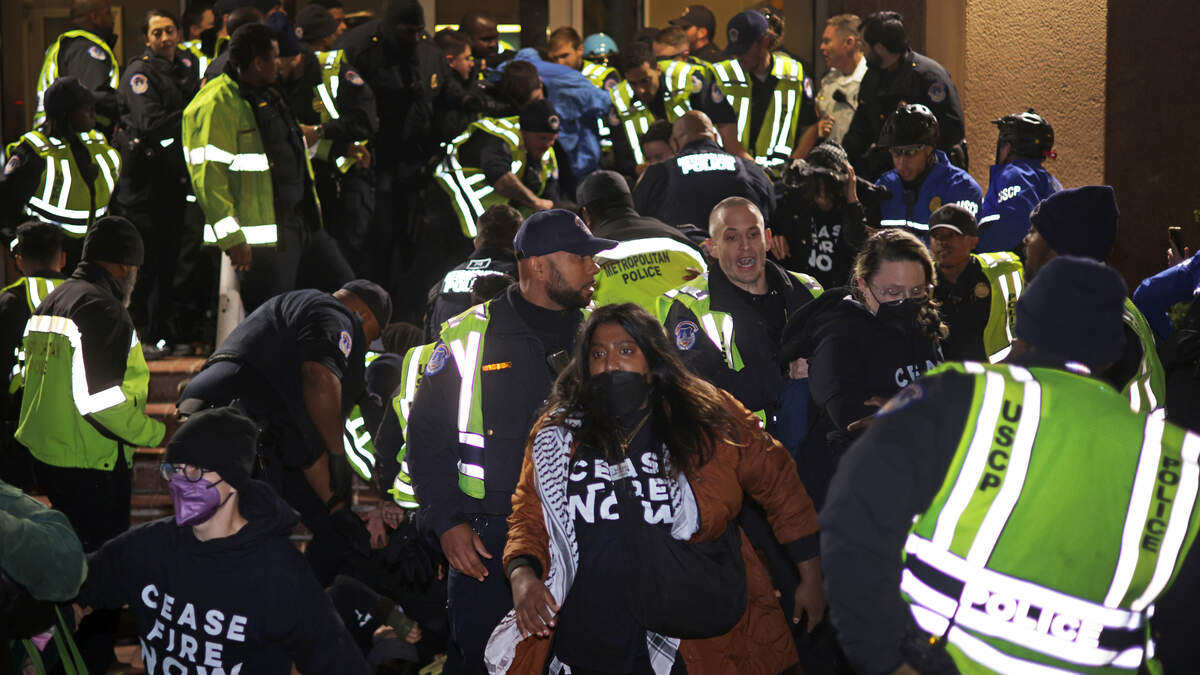 U.S. Capitol Police officers say six Capitol officers suffered minor injuries during protests outside Democratic National Committee headquarters in Washington, D.C. as part of a pro-Palestinian rally Wednesday. Protesters got into a shoving match with Capitol officers, with one arrest being made for assault. Pepper spray was used on protesters, with DNC members evacuated.
