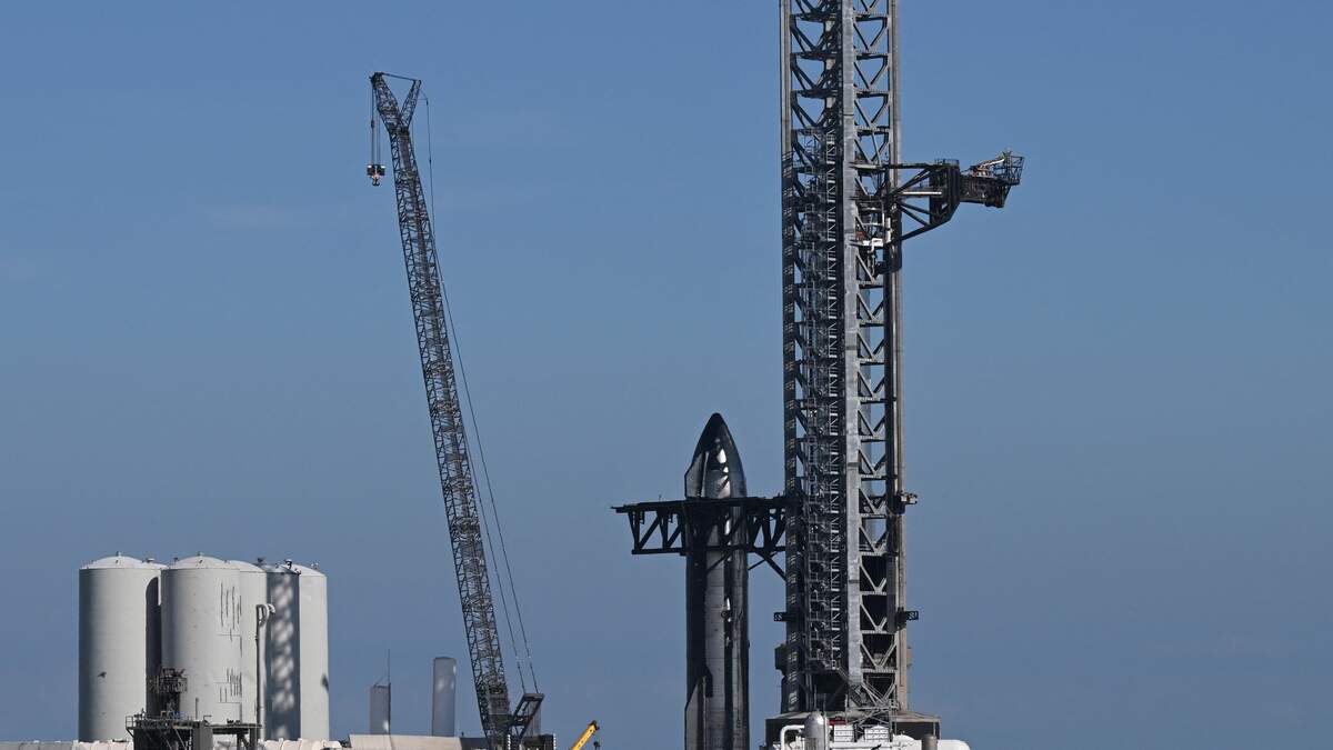 SpaceX's huge Super Heavy-Starship is unstacked from the booster as it sits on the launchpad at Starbase in Boca Chica, Texas, ahead of its second test flight.Photo: TIMOTHY A. CLARY / AFP / Getty Images