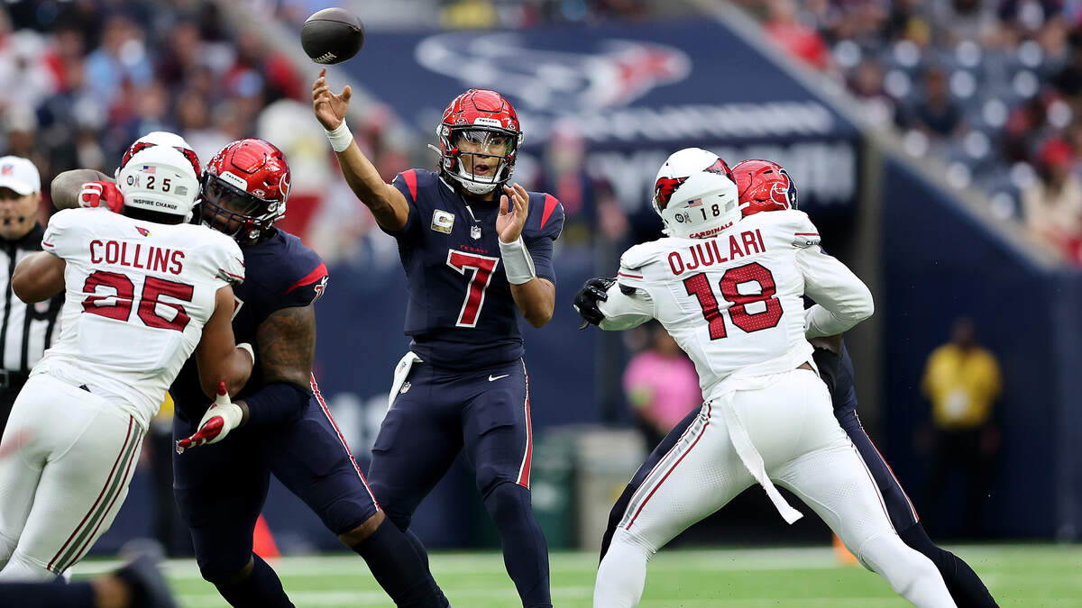 The Texans downed the Arizona Cardinals 21-16 at NRG Stadium to notch their third straight win and record the team's longest win streak since 2018. Houston rookie quarterback C.J. Stroud completed 27-of-37 passes for 336 yards, two touchdowns and a season-high three interceptions. His stellar connection with fellow rookie Tank Dell continued, as the wideout finished the game with eight catches for 149 yards and a TD. Texans linebacker Blake Cashman led the defense with 19 tackles and a sack, while Derek Stingley Jr. grabbed his first pick of the season. Houston is sitting second in the AFC South at 6-and-4. The Texans will now host the AFC South rival Jacksonville Jaguars on Sunday afternoon.
