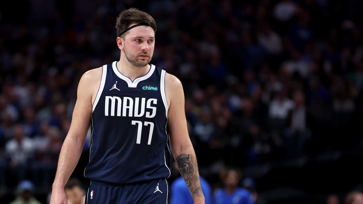 Luka Doncic #77 of the Dallas Mavericks walks on up the court in the second half against the Los Angeles Lakers at American Airlines Center on December 12, 2023 in Dallas, Texas. Photo: Tim Heitman / Getty Images Sport / Getty Images