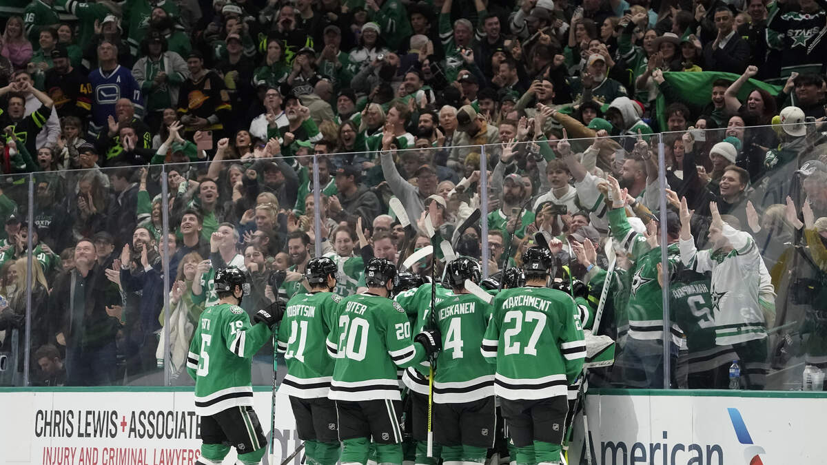 The Dallas Stars celebrate after Matt Duchene #95 of the Dallas Stars scored the game winning goal in overtime to defeat the Vancouver Canucks at American Airlines Center on December 21, 2023 in Dallas, Texas.Photo: Sam Hodde / Getty Images Sport / Getty Images