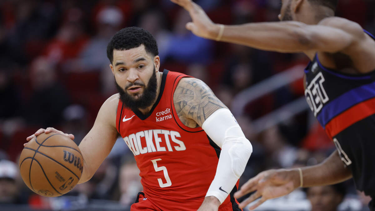 Fred VanVleet #5 of the Houston Rockets controls the ball against the Detroit Pistons during the first half at Toyota Center on January 01, 2024 in Houston, Texas.Photo: Carmen Mandato / Getty Images Sport / Getty Images