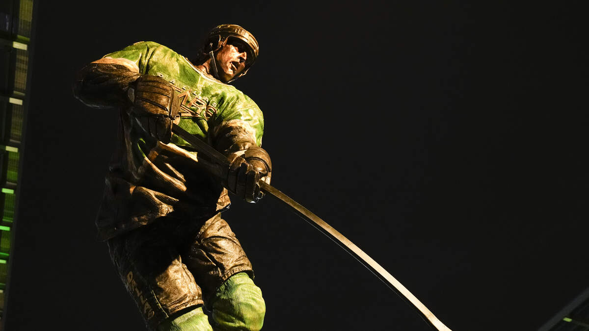 A general view of a statue honoring former Dallas Stars player Mike Modano is shown outside of the arena. Photo: Sam Hodde / Getty Images Sport / Getty Images