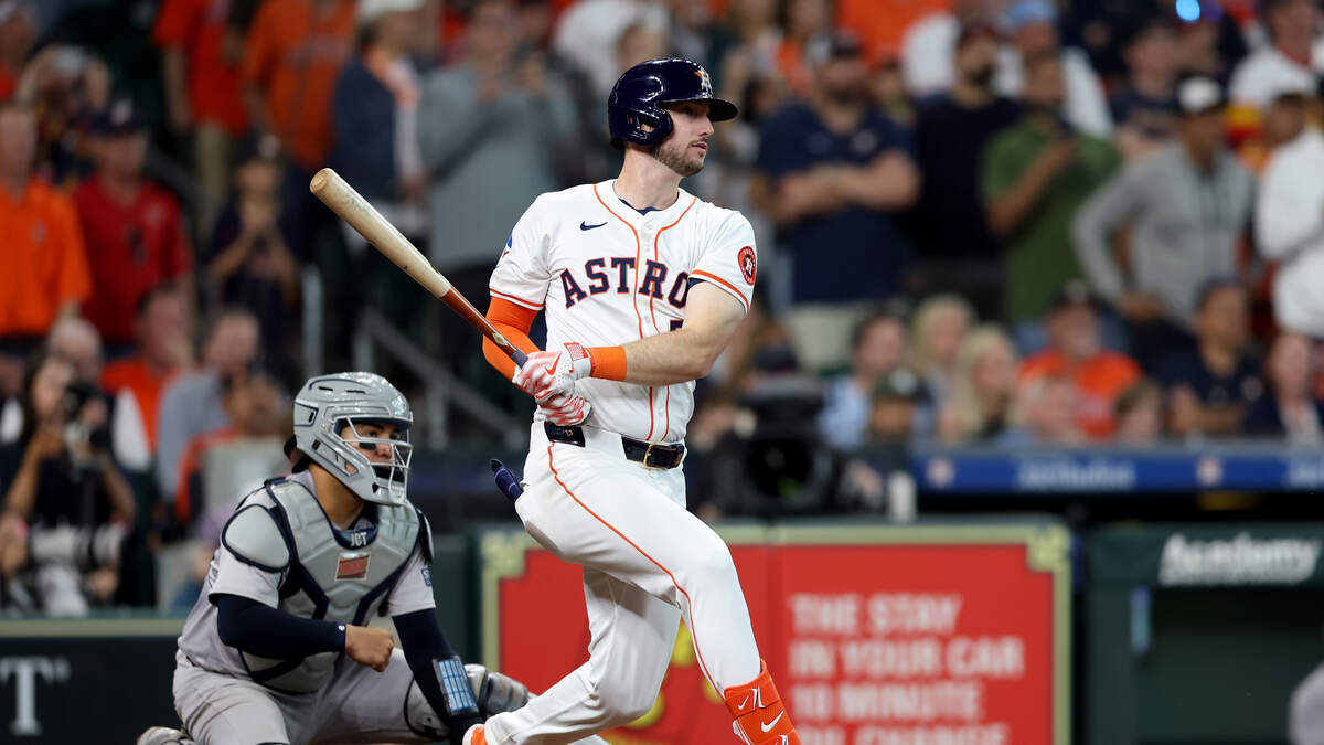 Kyle Tucker #30 of the Houston Astros singles in the ninth inning against the New York Yankees during Opening Day at Minute Maid Park on March 28, 2024 in Houston, Texas. Photo: Tim Warner / Getty Images Sport / Getty Images