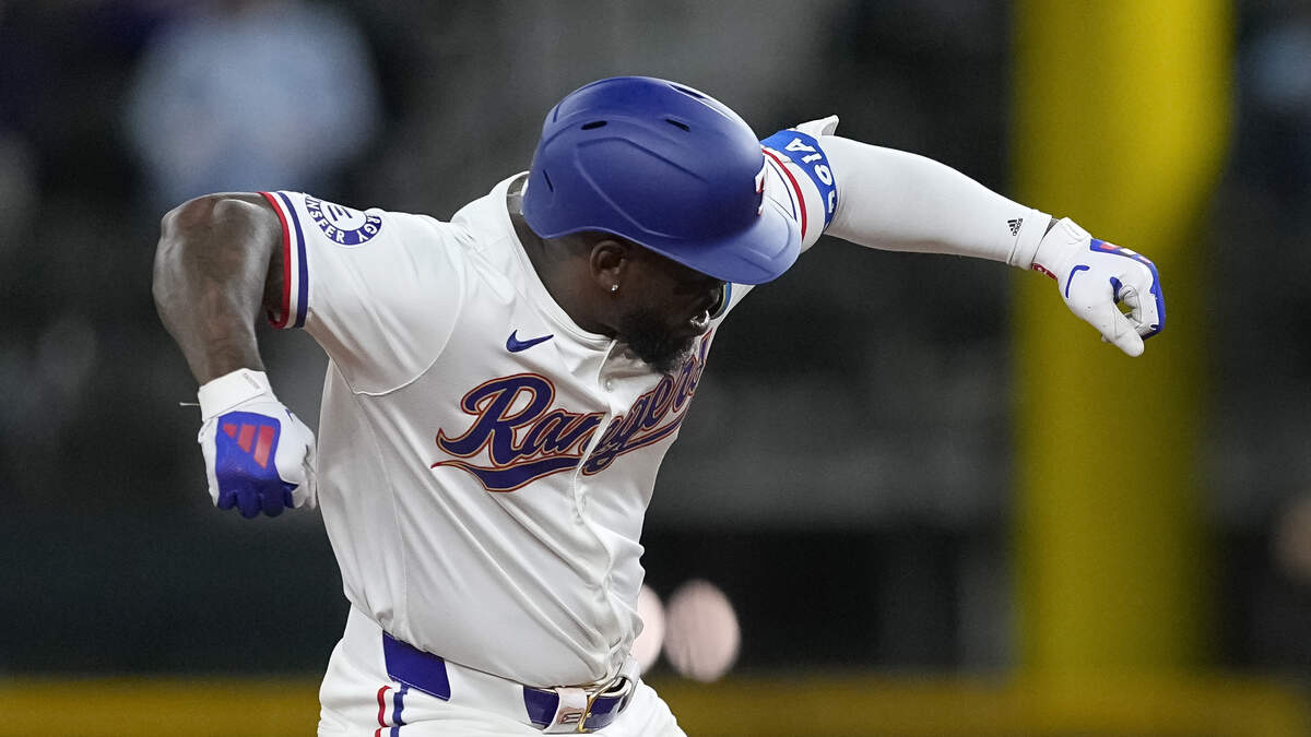 Adolis García #53 of the Texas Rangers celebrates hitting a double in the seventh inning against the Oakland Athletics at Globe Life Field on April 10, 2024 in Arlington, Texas.Photo: Sam Hodde / Getty Images Sport / Getty Images