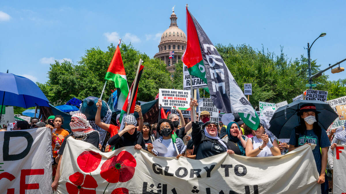 Pro-Palestinian demonstrators protest the ongoing war with Israel in Gaza on the annual remembrance of the Nakba at the Texas state Capitol on May 19, 2024 in Austin, Texas. Photo: Brandon Bell / Getty Images News / Getty Images