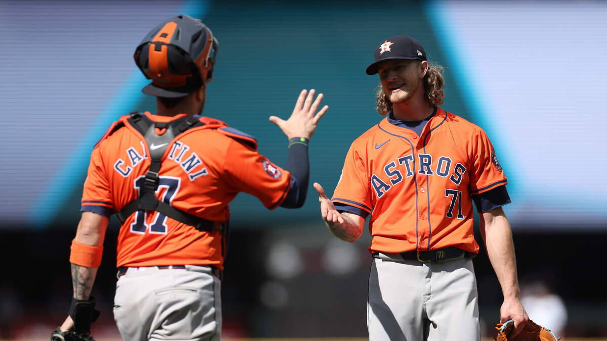 Victor Caratini #17 and Josh Hader #71 of the Houston Astros celebrate their 4-0 win against the Seattle Mariners at T-Mobile Park on May 30, 2024 in Seattle, Washington. Photo: Steph Chambers / Getty Images Sport / Getty Images