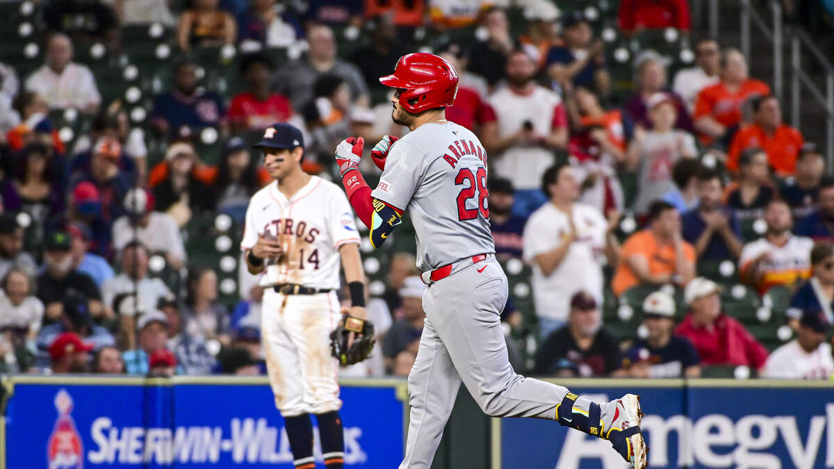 Nolan Arenado #28 of the St. Louis Cardinals celebrates after hitting a solo home run in the sixth inning against the Houston Astros at Minute Maid Park on June 05, 2024 in Houston, Texas.Photo: Logan Riely / Getty Images Sport / Getty Images