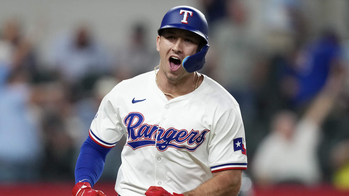 Wyatt Langford #36 of the Texas Rangers reacts as he runs the bases after hitting a walk off grand slam to defeat the New York Yankees at Globe Life Field on September 03, 2024 in Arlington, Texas. Photo: Sam Hodde / Getty Images Sport / Getty Images