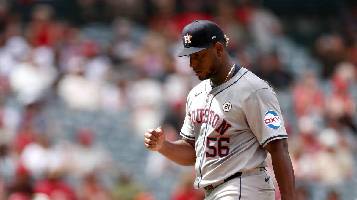 Ronel Blanco #56 of the Houston Astros reacts after an out to end the fifth inning against the Los Angeles Angels at Angel Stadium of Anaheim on September 15, 2024 in Anaheim, California. Photo: Katelyn Mulcahy / Getty Images Sport / Getty Images
