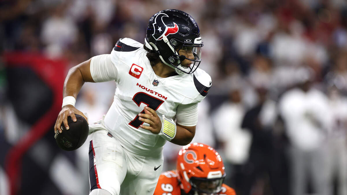 C.J. Stroud #7 of the Houston Texans scrambles with the ball during the second half against the Chicago Bears at NRG Stadium on September 15, 2024 in Houston, Texas. Photo: Tim Warner / Getty Images Sport / Getty Images