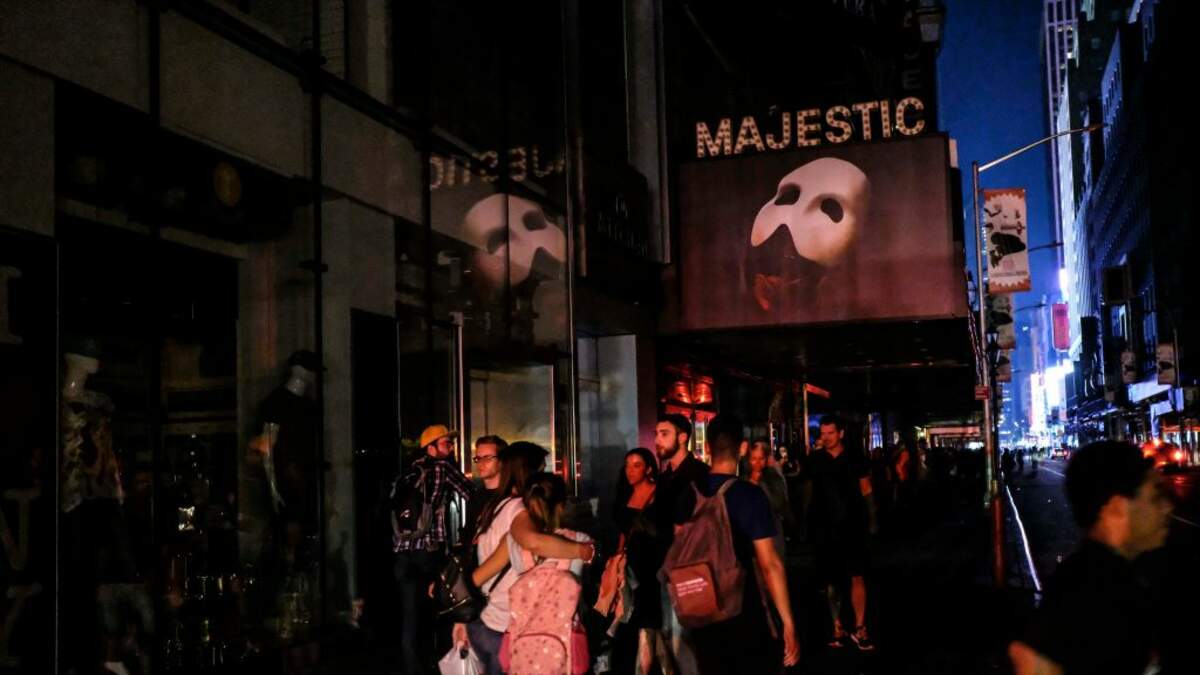 Photo: Lights for the Majestic Theater, which shows the Phantom of the Opera, during a major power outage on July 13, 2019 in New York City. Thousands of New Yorkers are without power as a major outage left portions of Manhattan, including Times Square and the Upper West Side in the dark and disrupting subway service across the city. (Getty Images)